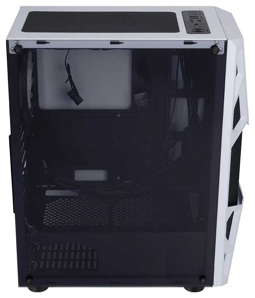 - + Корпус с отличным дизайном, вертушки с подсветкой и 6 шт, закалённое стекло это большой плюс, сверху пылевой фильтр на магните. В общем топ за свои деньги!