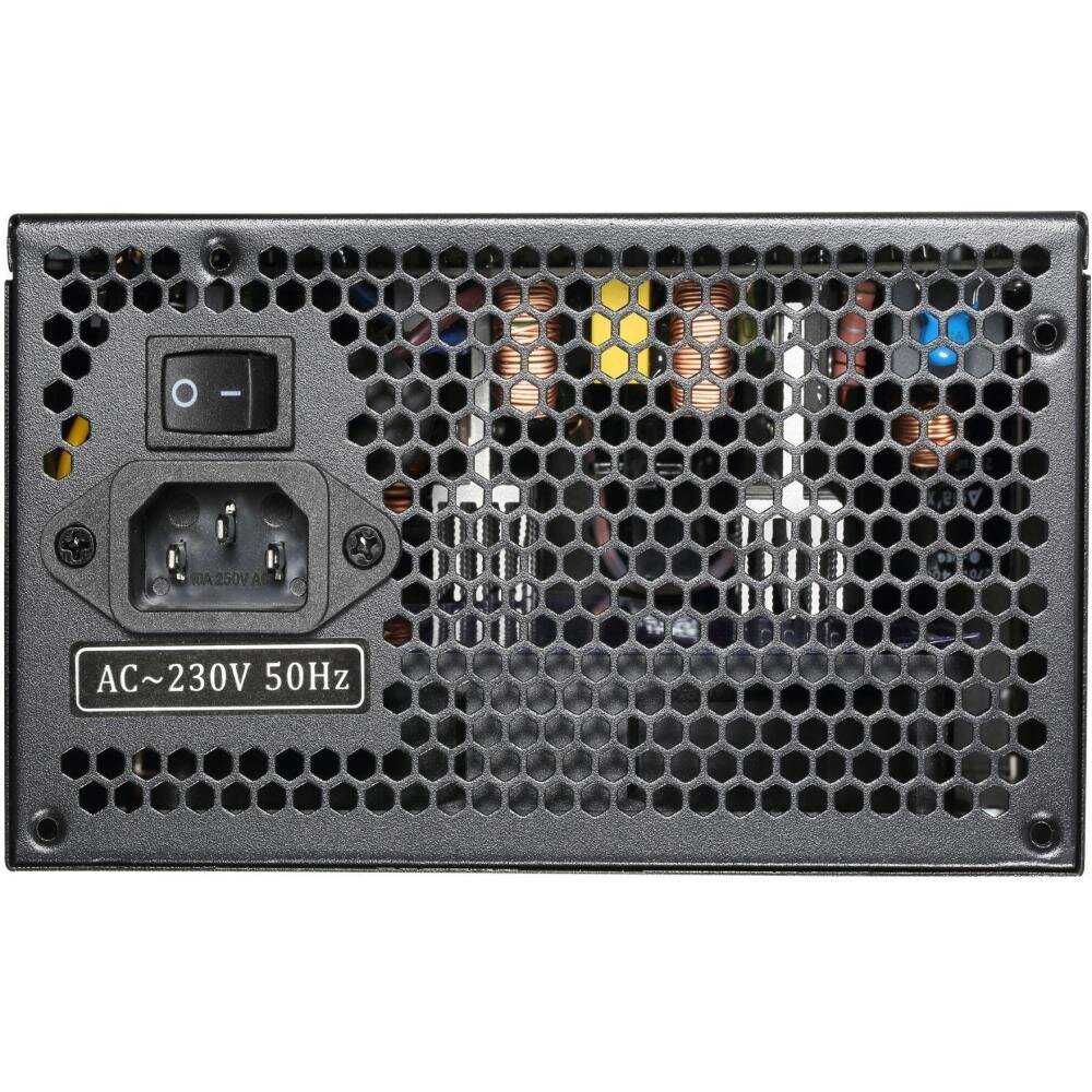 Заглянул во внутрь, через решетку - судя по всему в нем нет APFC как в описании. Нет и пассивного PFC. Обычный БП без наворотов. Даже CX - конденсаторов и синфазных фильтров не увидел на входе. Вместо них перемычки впаяны. Может это и норм для бюджетного БП.