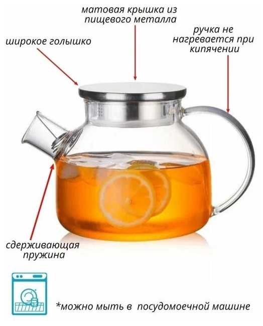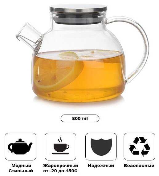 - Подходит для чая, травяных настоев, фруктовых смесей благодаря нейтральности стекла к запахам.