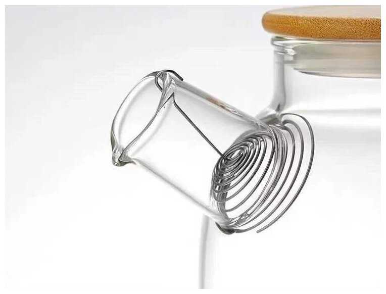 Стандартная комплектация включает стеклянный корпус, одну крышку (часто комбинированную: металл внутри + бамбук сверху) и спиралевидное ситечко. В отдельных поставках встречаются две крышки или дополнительные пружинки-фильтры. Важно проверять комплектацию при получении, так как деревянные элементы могут иметь царапины. Металлические накладки повышают износостойкость по сравнению с цельнодеревянными аналогами. -