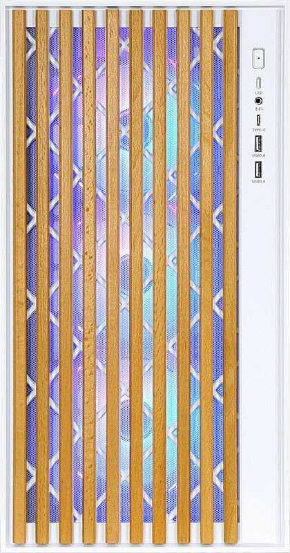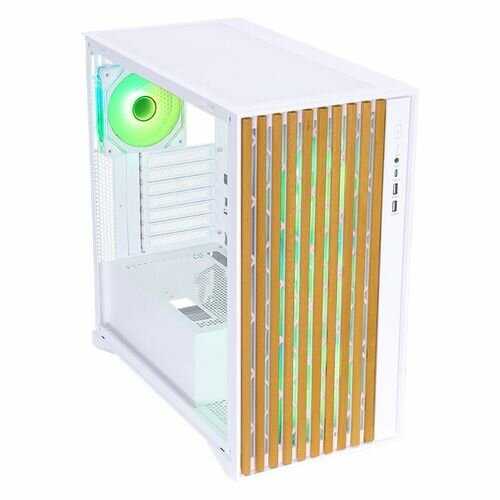 - + Внешне корпус выглядит стильно и привлекательно, особенно с декоративной панелью под дерево на передней стороне. В комплекте идут четыре качественных вентилятора: один сзади и три спереди, которые обеспечивают хорошее охлаждение без лишнего шума. На передней панели удобно расположены разъемы USB, включая два порта версии 3.0 и один Type-C, что упрощает подключение периферии. Стенки сделаны из прочного металла толщиной 0.7 мм, а боковая панель из закаленного стекла позволяет любоваться внутренностями. Корпус полностью окрашен в белый цвет, что придает ему свежий и современный вид. Подходит для материнских плат формата ATX, с максимальной длиной видеокарты до 410 мм и высотой кулера до 181 мм.