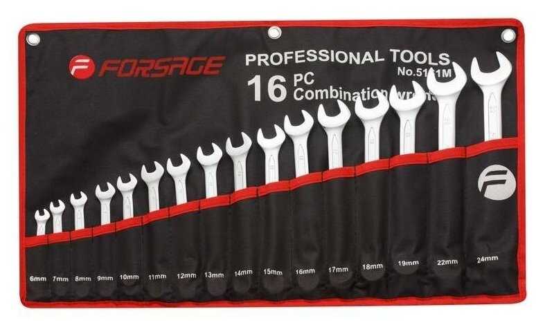 6 отзывов пользователей o FORSAGE Набор ключей комбинированных 16пр. (6-19, 22, 24мм)на полотне