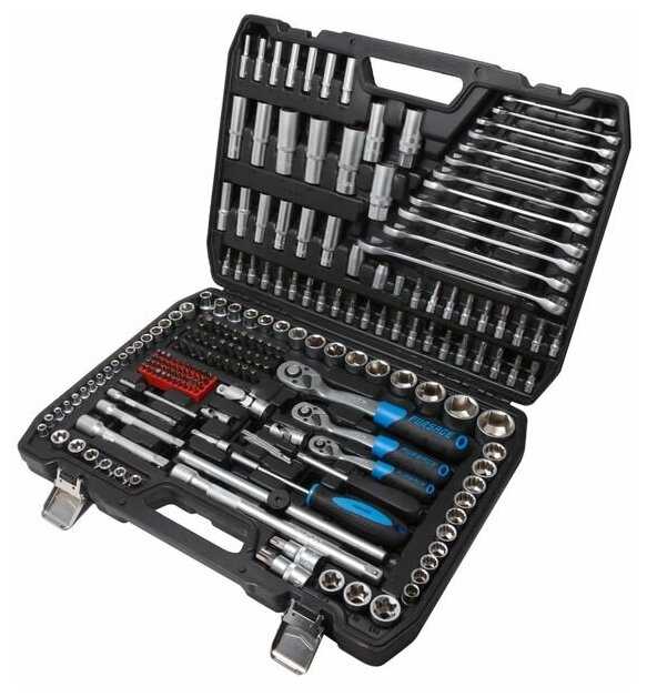 | Головки торцевые подробно : | 1/2": 10 11 12 13 14 15 17 19 20 21 22 24 27 30 32 мм, 1/2": E20 E22 E24, Т-образный вороток: 1/2" 1/4", кардан: 1/2" 3/8" 1/4", трещотка: 1/2" 3/8" 1/4", 1/2": удлинители 125 250 мм, 1/2": свечные головки 16 21 мм, 1/4": 4 4.5 5 5.5 6 7 8 9 10 11 12 13 14 мм, 1/4": E4 E5 E6 E7 E8, 1/4": удлинители 50 100 мм, 1/4": отвертка под биты, 3/8": 10 11 12 13 14 15 16 17 18 19 мм, 3/8": E10 E11 E12 E14 E16 E18, 3/8": головки свечные 18 мм |