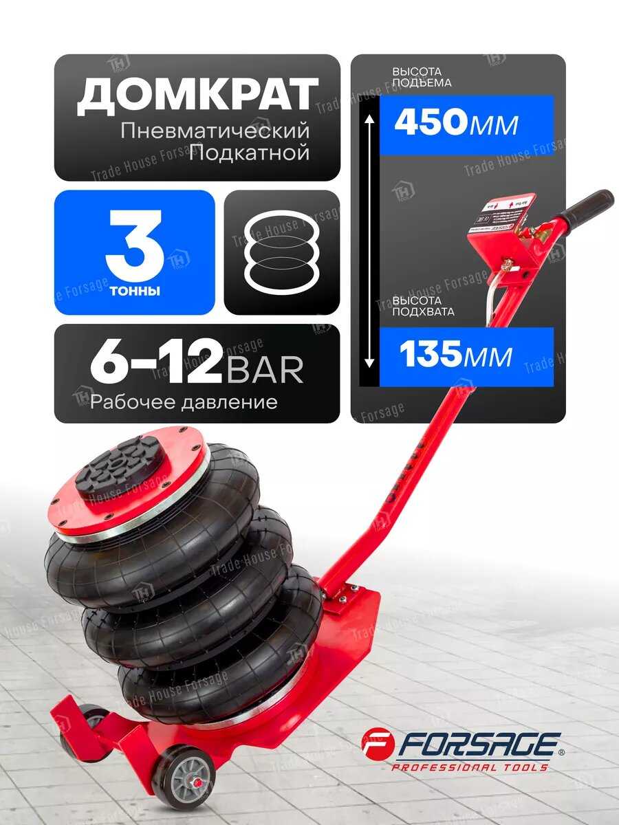 22 отзывов пользователей o Forsage Подкатной домкрат пневматический 3т (145-420мм)