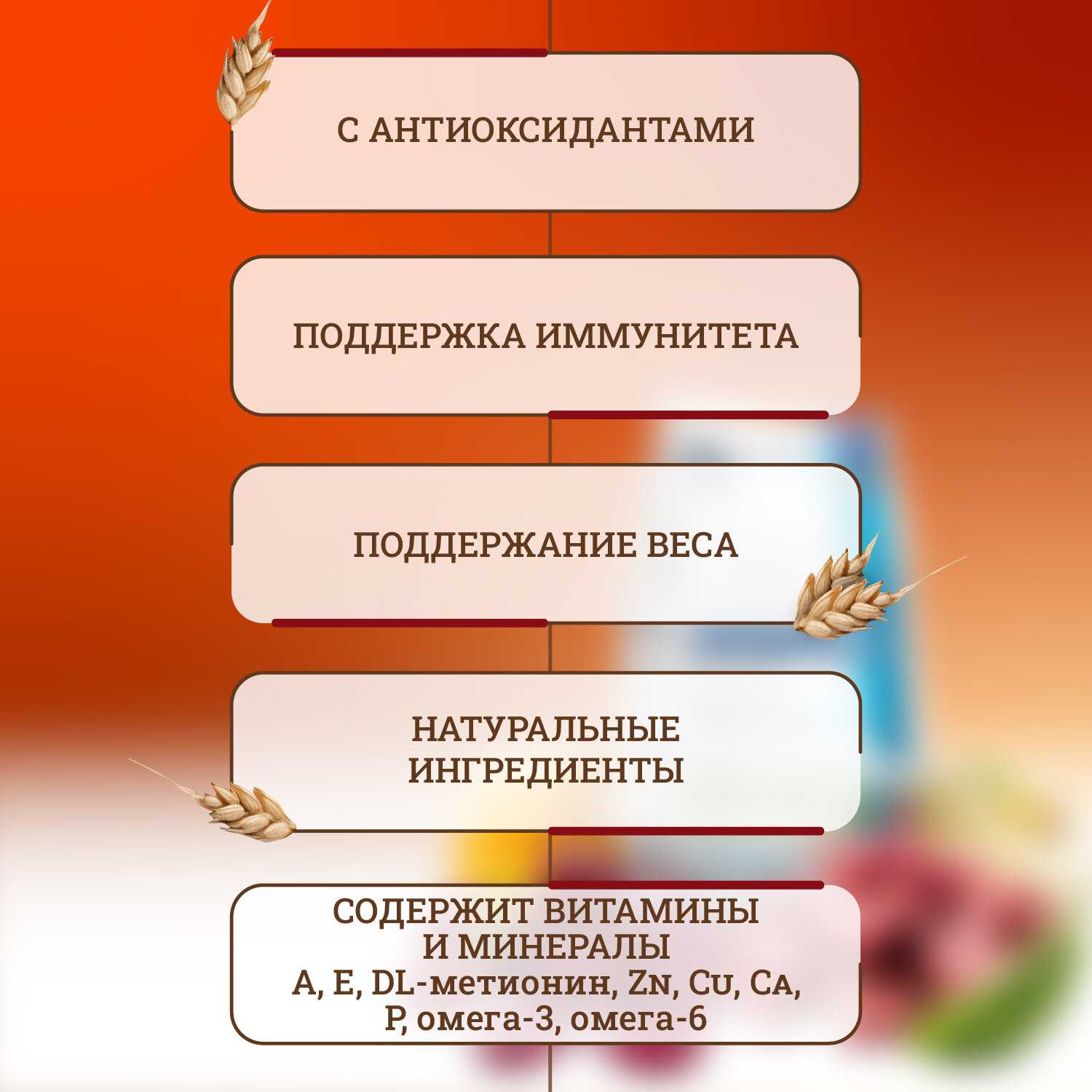 | Особые потребности : | гипоаллергенный, для здоровья кожи и блеска шерсти, при склонности к избыточному весу, при чувствительном пищеварении |
