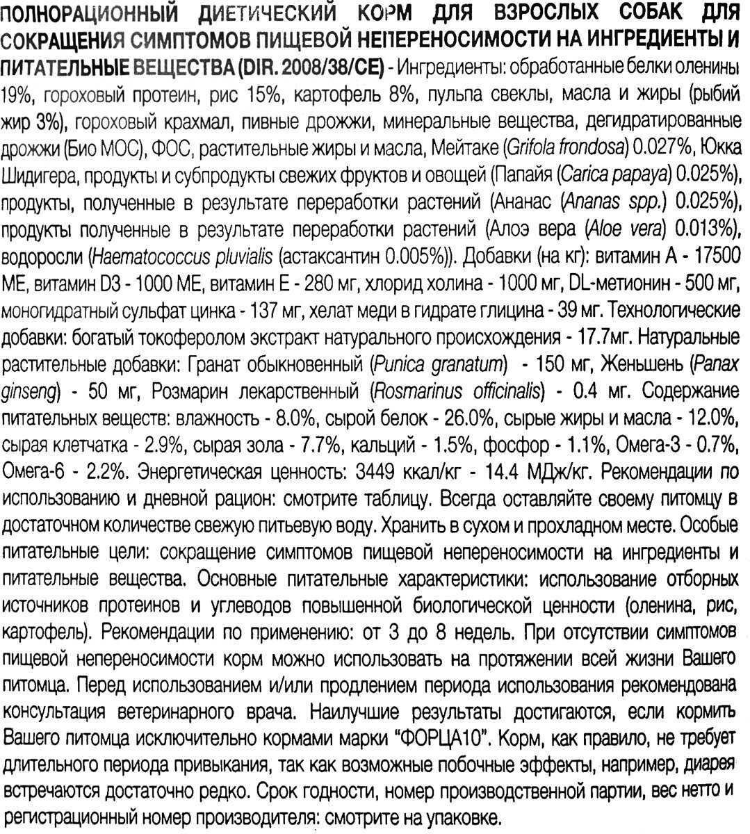 Характеристи Forza10 Diet Medium (оленина с картофелем)