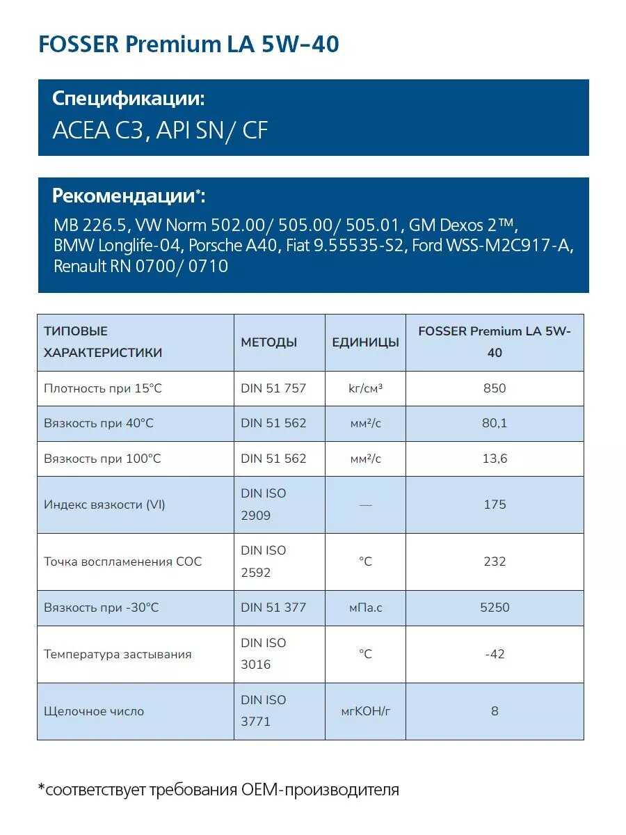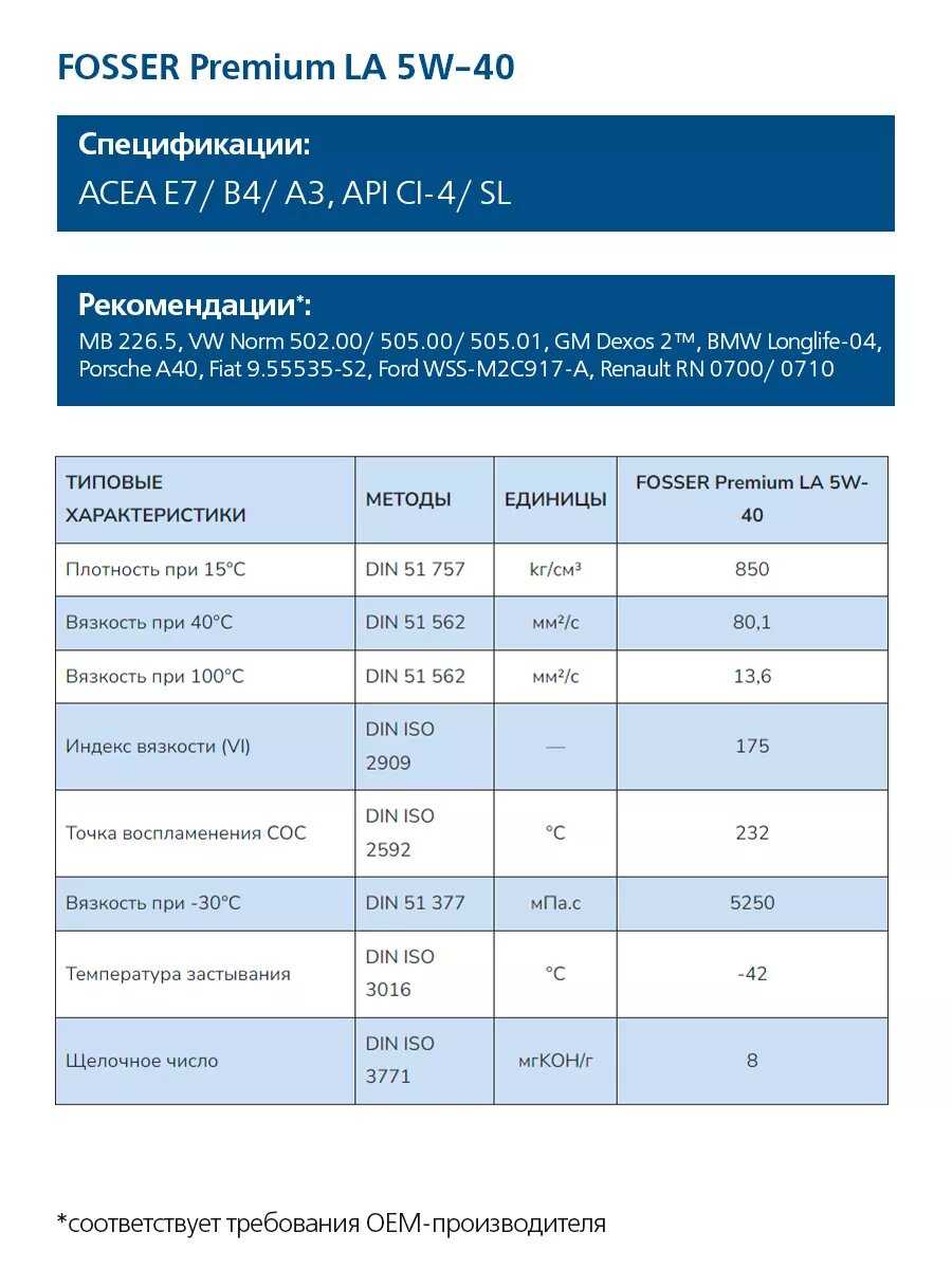 Обзоры и руководства на FOSSER Premium LA 5W-40