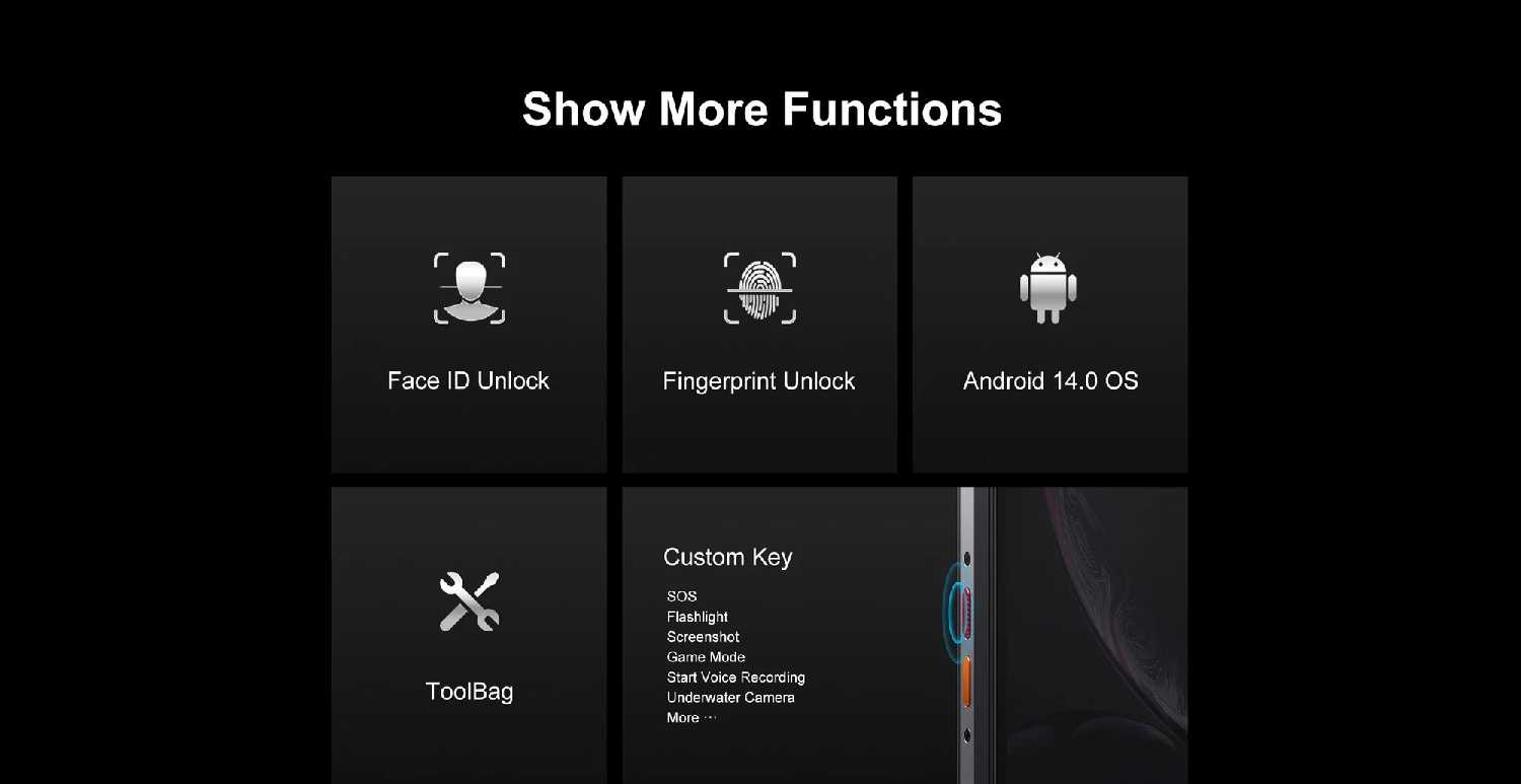 ударопрочный корпус, FM-радио, фонарик, датчик приближения, гироскоп, компас, датчик освещенности, акселерометр