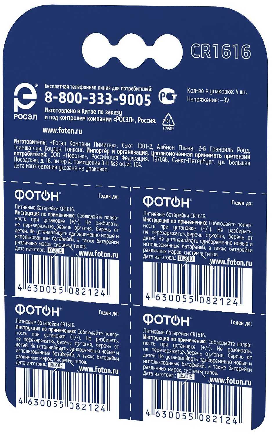 3 отзывов пользователей o ФОТОН CR1616 4 шт.