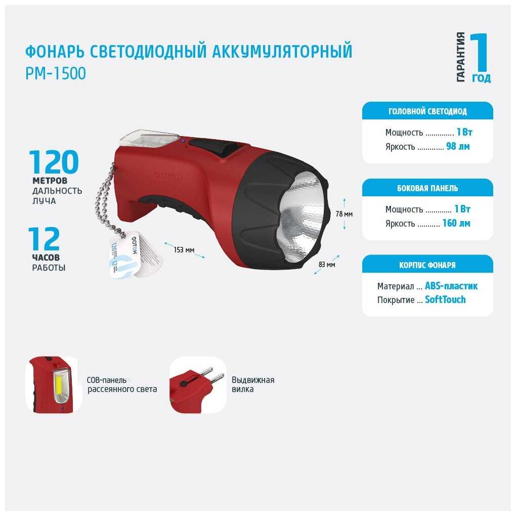 Характеристи ФОТОН Фонарь аккумуляторный светодиодный "фотон" РМ-1500