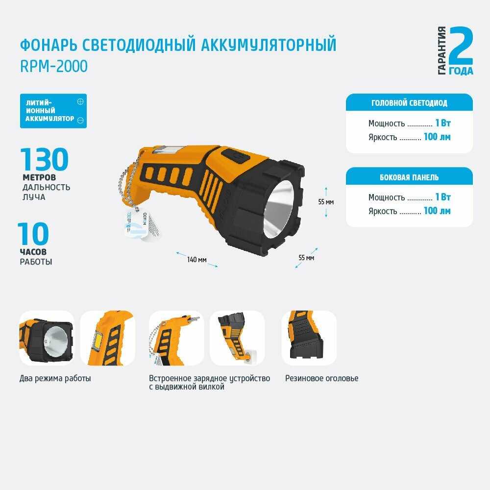 Характеристи ФОТОН Фонарь аккумуляторный светодиодный (RРМ-2000)