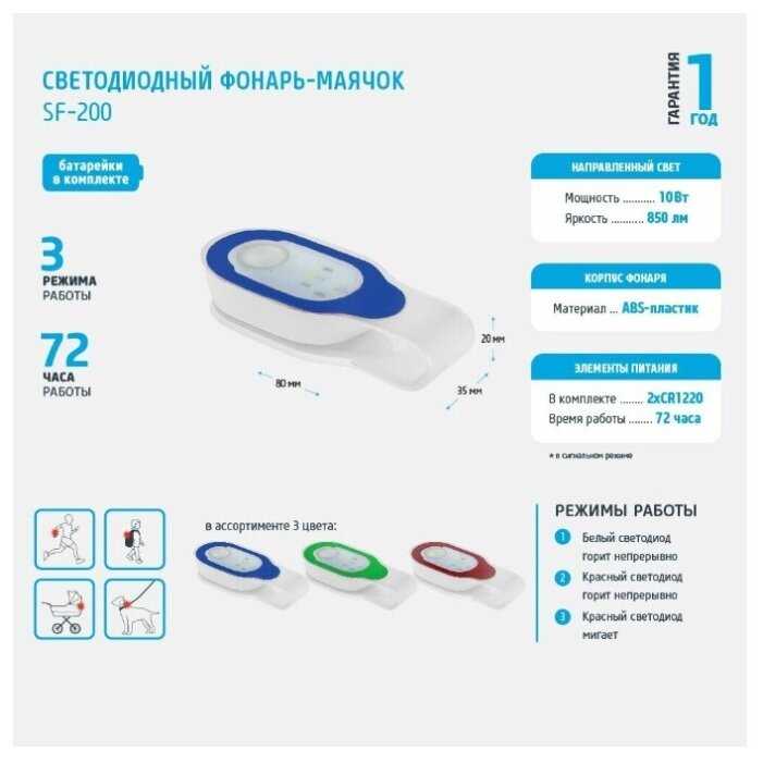 Отзывы о Светодиодный фонарь-маячок фотон SF-200 2хCR2032 в комплекте, синий 23460 15965704