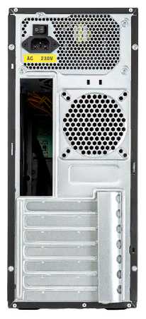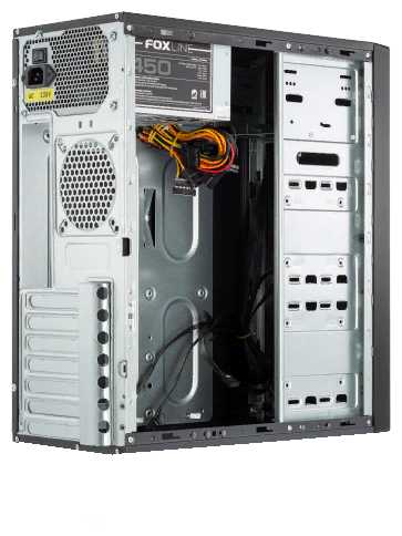 - + Пожалуй самый компактный корпус (из недорогих по крайней мере), вмещающий полноразмерную ATX-плату: более короткий за счёт расположения жёстких дисков на внутренней стойке параллельно мат.плате (почему-то пока что нигде в интернетах фотографий внутренностей нет, вот прикладываю свою, на живом примере). По высоте и ширине без особенностей - просто минимально возможные при блоке питания обычного размера и расположения. Строгий скромный дизайн, 4 USB-порта спереди (всего лишь 2.0 правда все).
