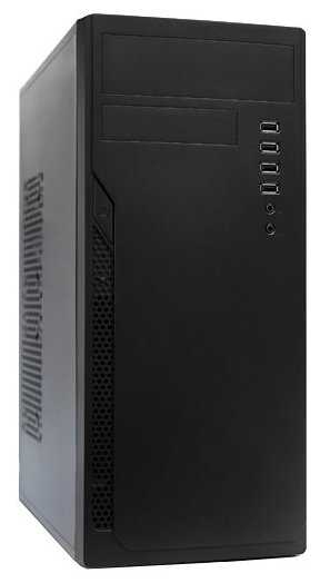 Вместительный для своих размеров. Самый компактный корпус, который удалось найти, под полноразмерную АТХ-плату. Симпатично смотрится в горизонтальном положении в качестве НТРС. Вообще, откровенной дешёвкой не выглядит, передняя панель приятная, бывало и похуже. Есть возможность установки вентилятора 120мм на боковую стенку - хорошо помогает при эксплуатации древних видеокарт с пассивным охлаждением. Если через боковую стенку вдув и через блок питания и заднюю стенку выдув - продуваемость получается вполне сносная для столь маленького корпуса.
