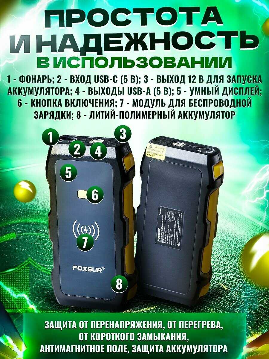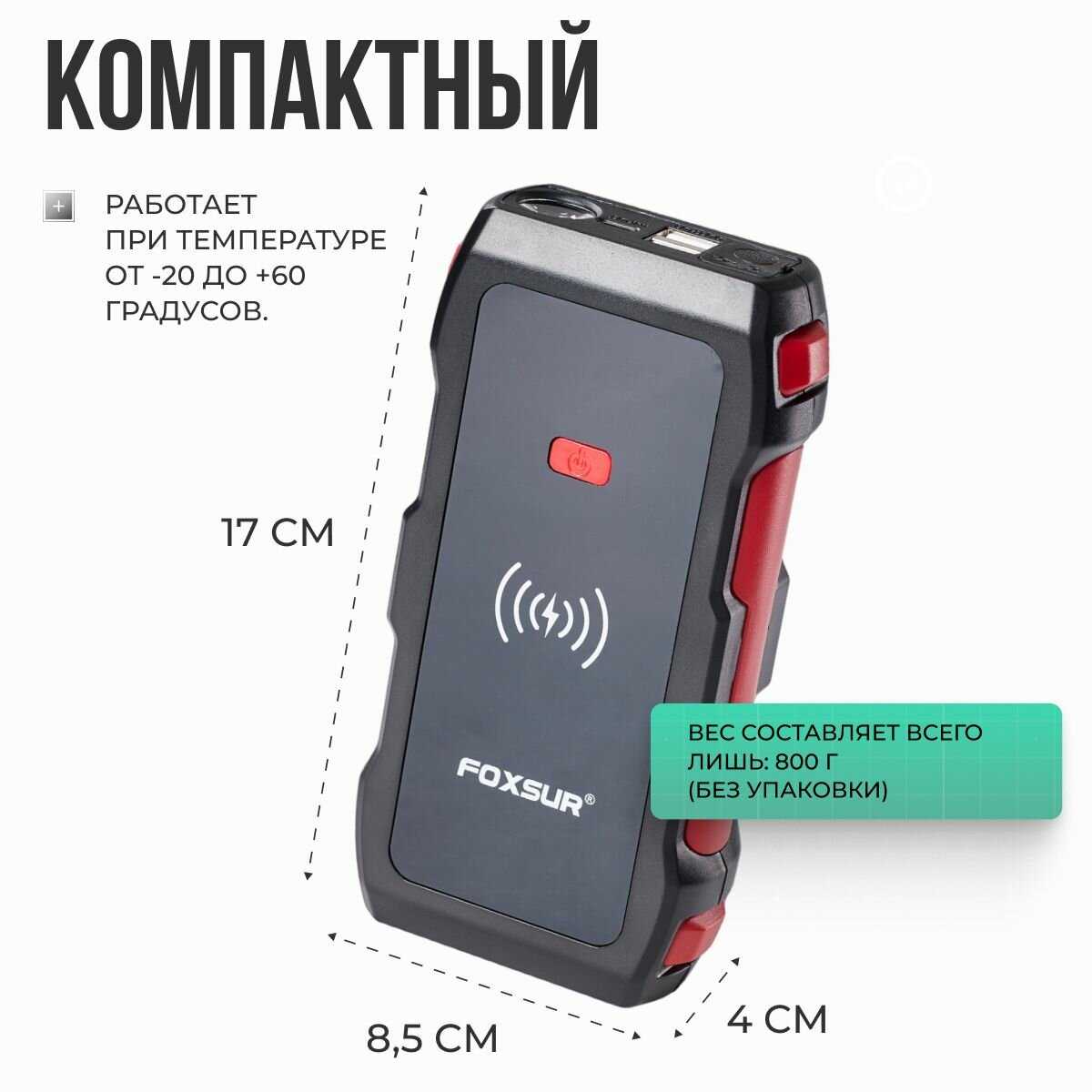 - - не соответствует описанию, очень лёгкий, не выдаёт пусковой ток. можно использовать только как зарядку к телефону и фонарик