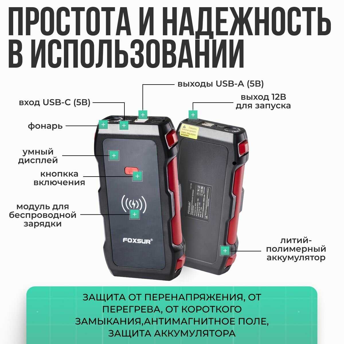 Подробная комплектация : | Пусковое устройство, кейс, зажимы, USB кабель, инструкция на русском языке |