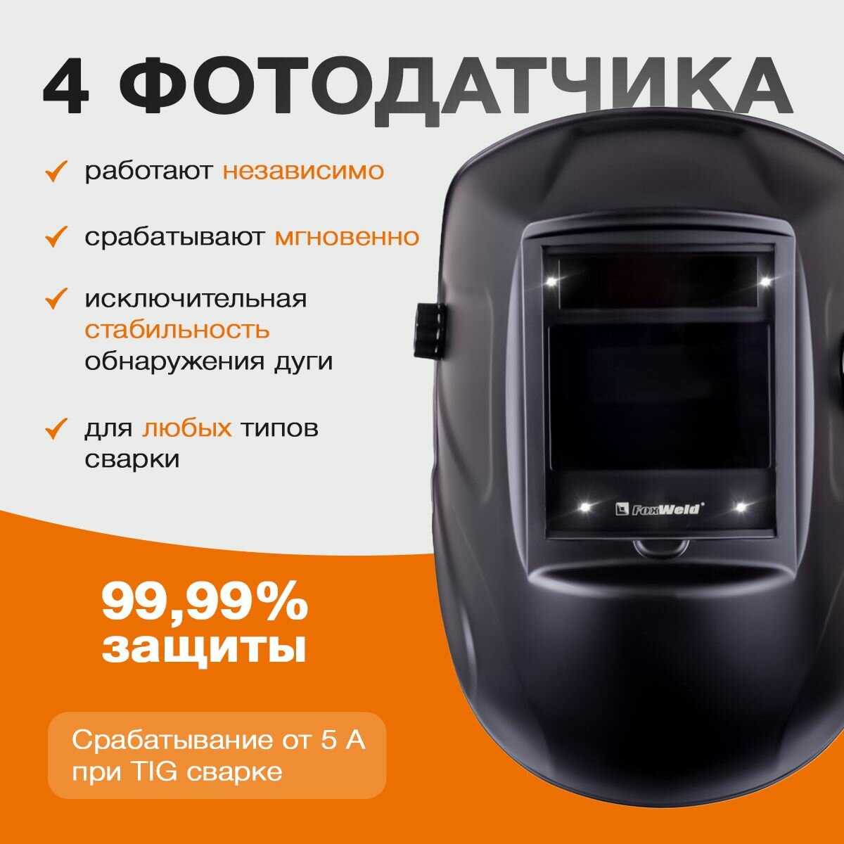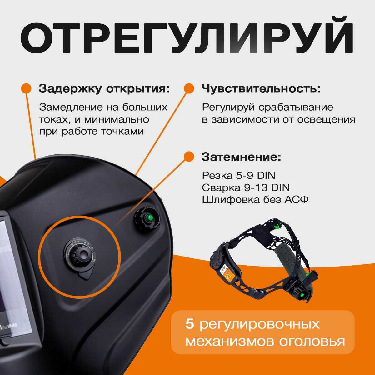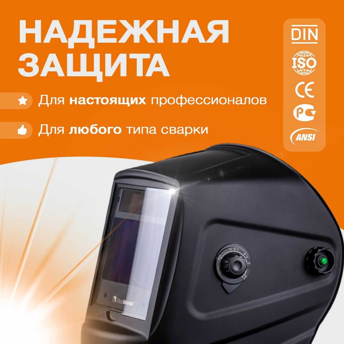 | Особенности : | защита от УФ/ИК лучей, защита от брызг расплавленного металла, изменяемая скорость срабатывания светофильтра, подходит для газосварки, установка защитного стекла |