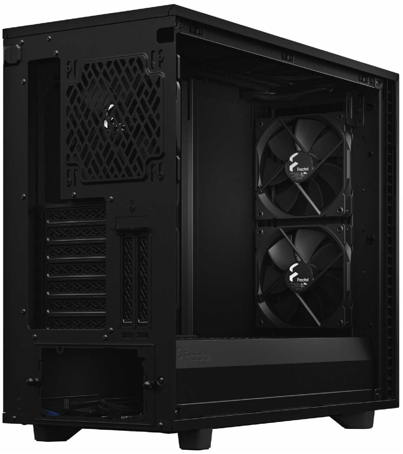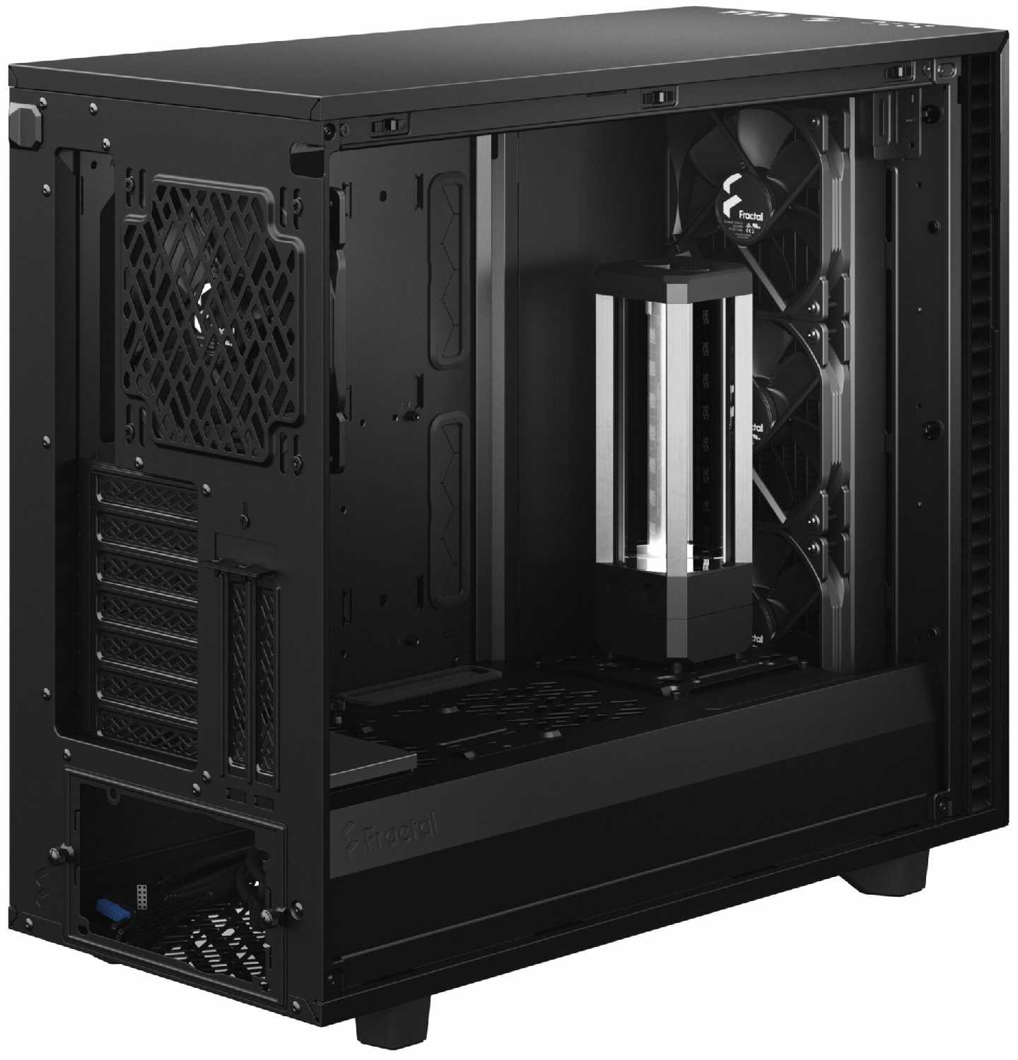 место для 120/140 мм вентилятора для одного - спереди для двух - снизу и для трёх - сверху, отсеки 3.5" совместимы с носителями 2.5", опциональная возможность установки до 14 комбинированных отсеков 2.5/3.5" и до 4 отсеков для 2.5" накопителей