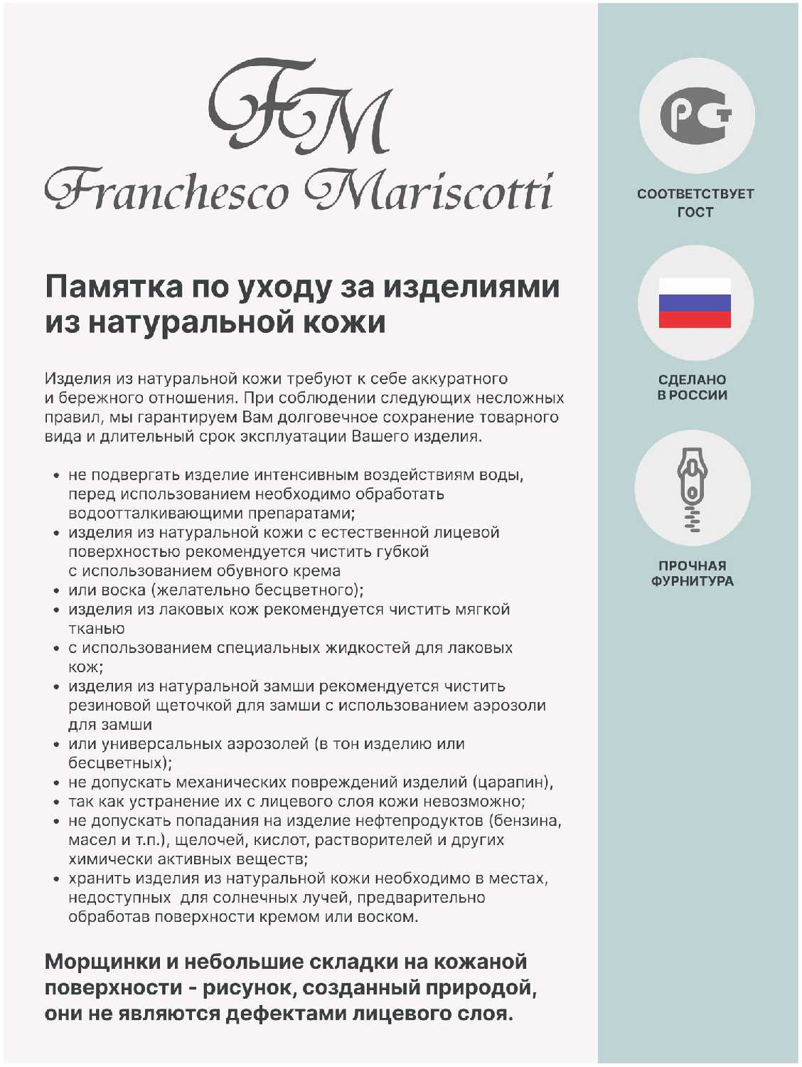 - + Отличное качество кожи, молнии надёжные