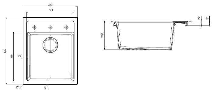 - - Мойка с прямоугольным отверстием для скрытогл перелива была укомплектована круглым переливом
