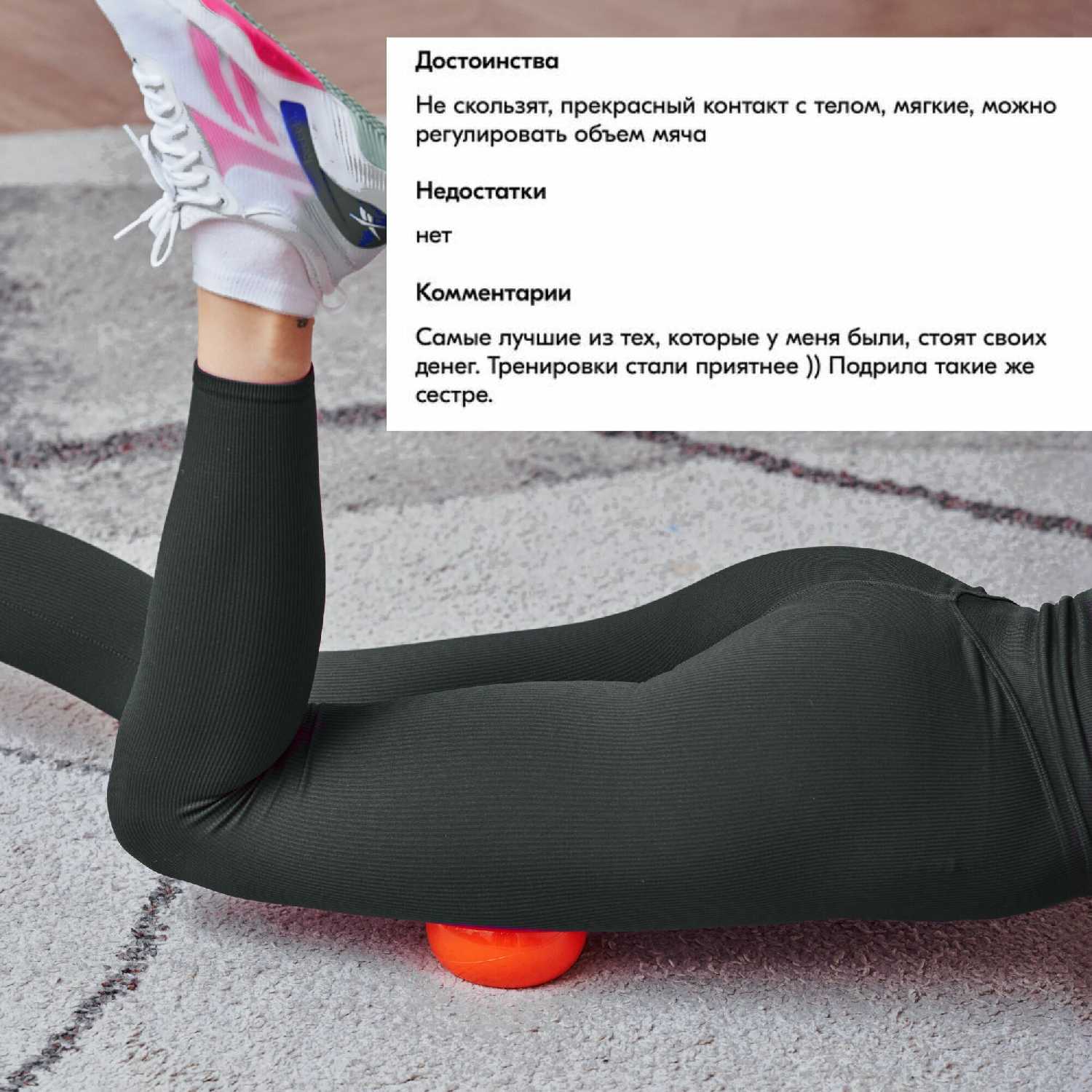 - + Прекрасные мягкие мячики. Приятные на ощупь, без запаха, прочные. Делаю мфр комплексы в том числе с ними, хорошо прорабатывают мышцы, на которые нельзя воздействовать роллом или твердыми мячиками