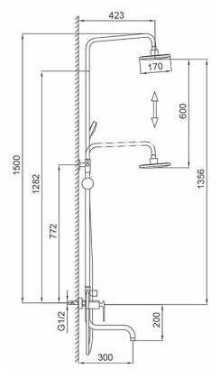 | Особенности : | S-образные эксцентрики, антиизвестковое покрытие, аэратор, держатель душевой лейки, поворотный излив, регулируемый верхний душ |