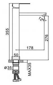 - Высота излива (точные параметры не указаны, но в отзывах подчёркивается "удобно мыть руки") позволяет размещать под краном крупные предметы.