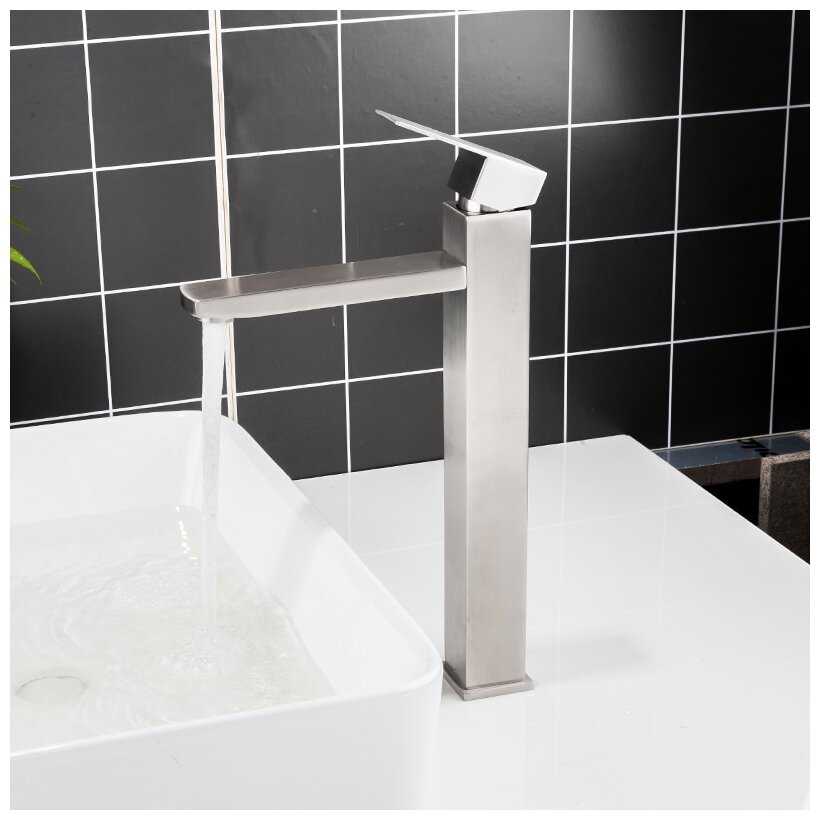 - Прямоугольная форма излива и угловая ручка создают стильный внешний вид, выделяющийся на фоне стандартных округлых моделей.