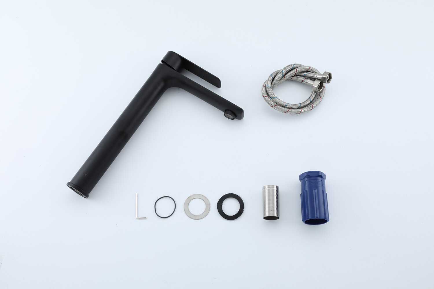 - + В целом товар выглядит дороже своей цены. Упаковочная коробка геометрически соответствует новому товару. Внутри упаковки - полиэтиленовый брендированный пакет, поролоновая упаковка изделия и собственно само изделие. Матированная нержавеющая сталь, прижим из качественной пластмассы. Резьбы нарезаны точно - нигде не "заедает". Комплект поставки: Смеситель, сгон для установки, пластиковая гайка для зажима в столешнице, гибкая подводка, прокладки и шайба прижимная. Сборка проблем не вызывает.