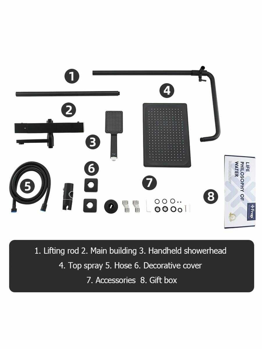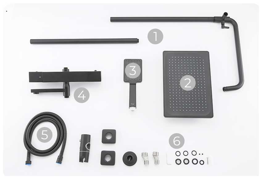 | Комплектация : | верхний душ, держатель лейки, душевая стойка, душевая штанга, излив для набора воды, кронштейн, лейка, настенный держатель, отражатель, ручной душ, смеситель, шланг, эксцентрик |