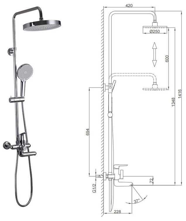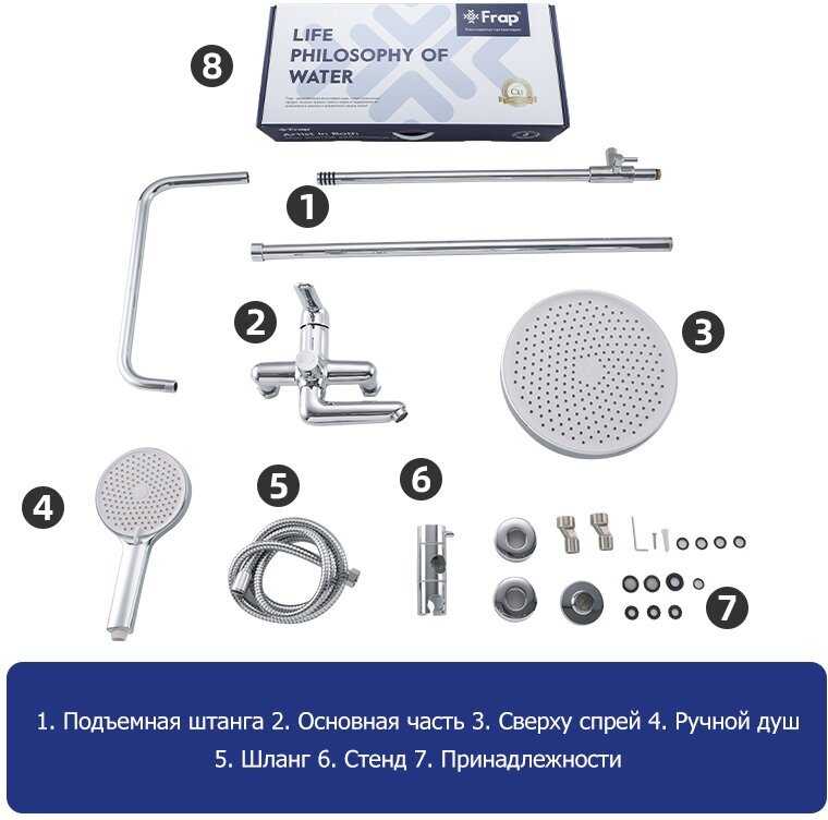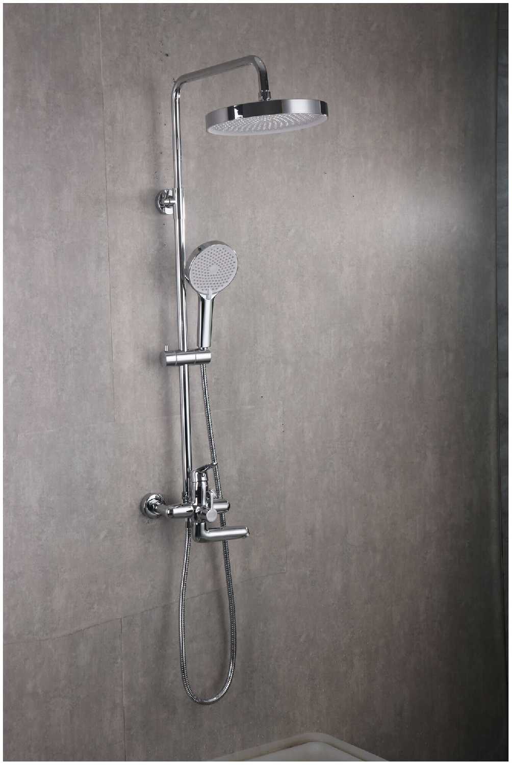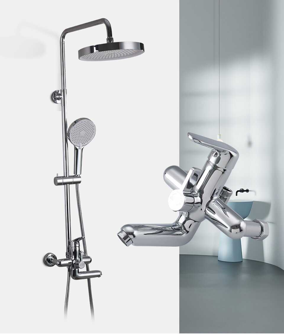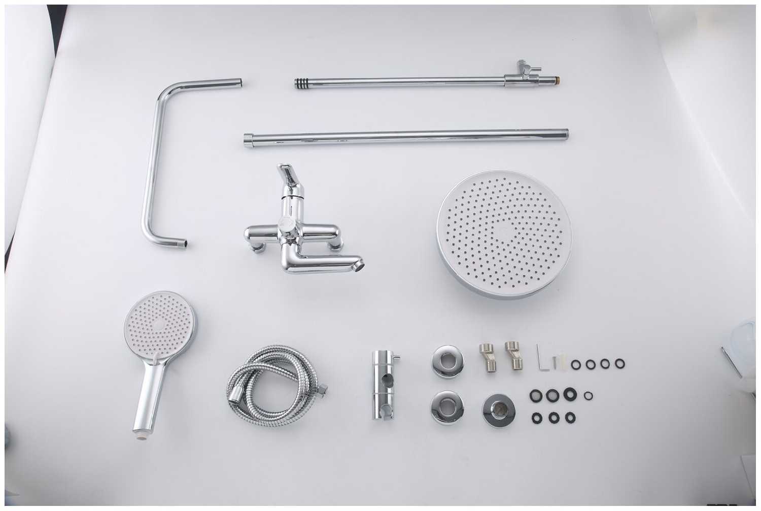 Комплектация : | лейка, шланг, настенный держатель, кронштейн, держатель лейки, верхний душ, ручной душ, излив для набора воды, душевая стойка, набор эксцентриков, прокладки, смеситель |