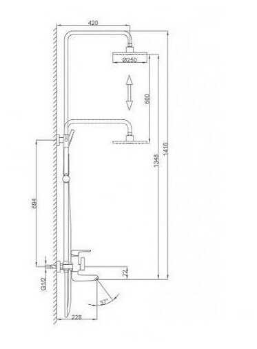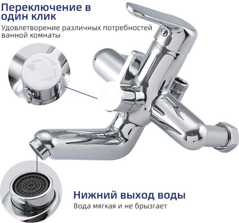 Особенности : | аэратор, регулируемый верхний душ, S-образные эксцентрики, поворотный излив, держатель душевой лейки |