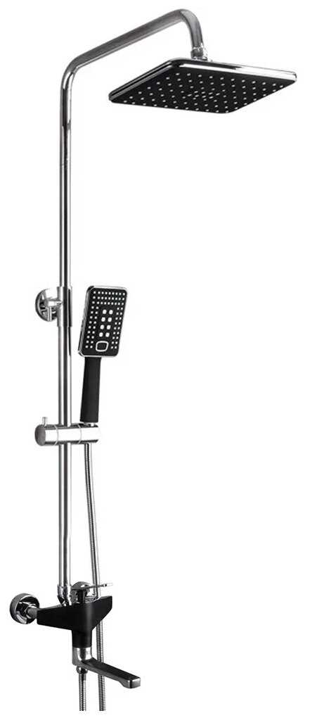 | Комплектация : | верхний душ, держатель лейки, душевая стойка, излив для набора воды, кронштейн, лейка, ручной душ, смеситель, шланг |