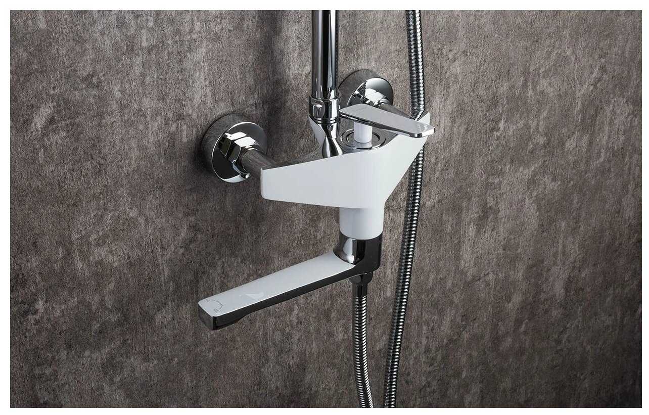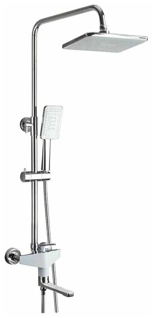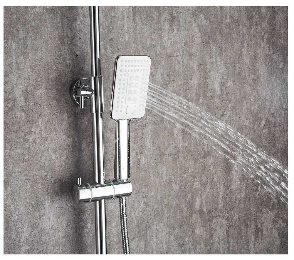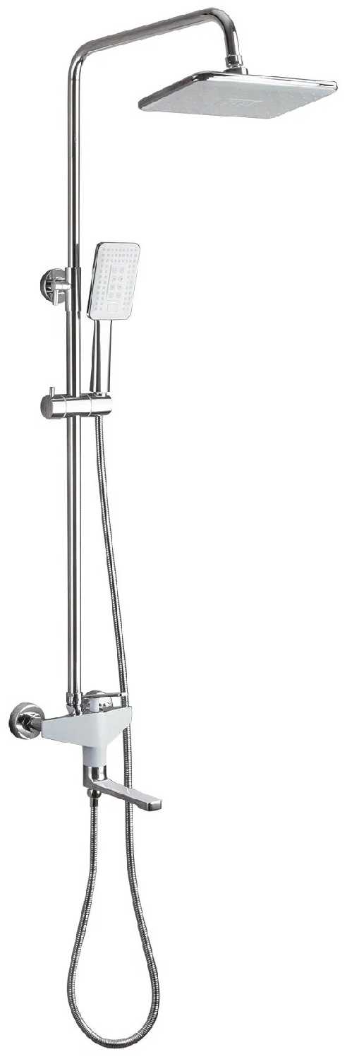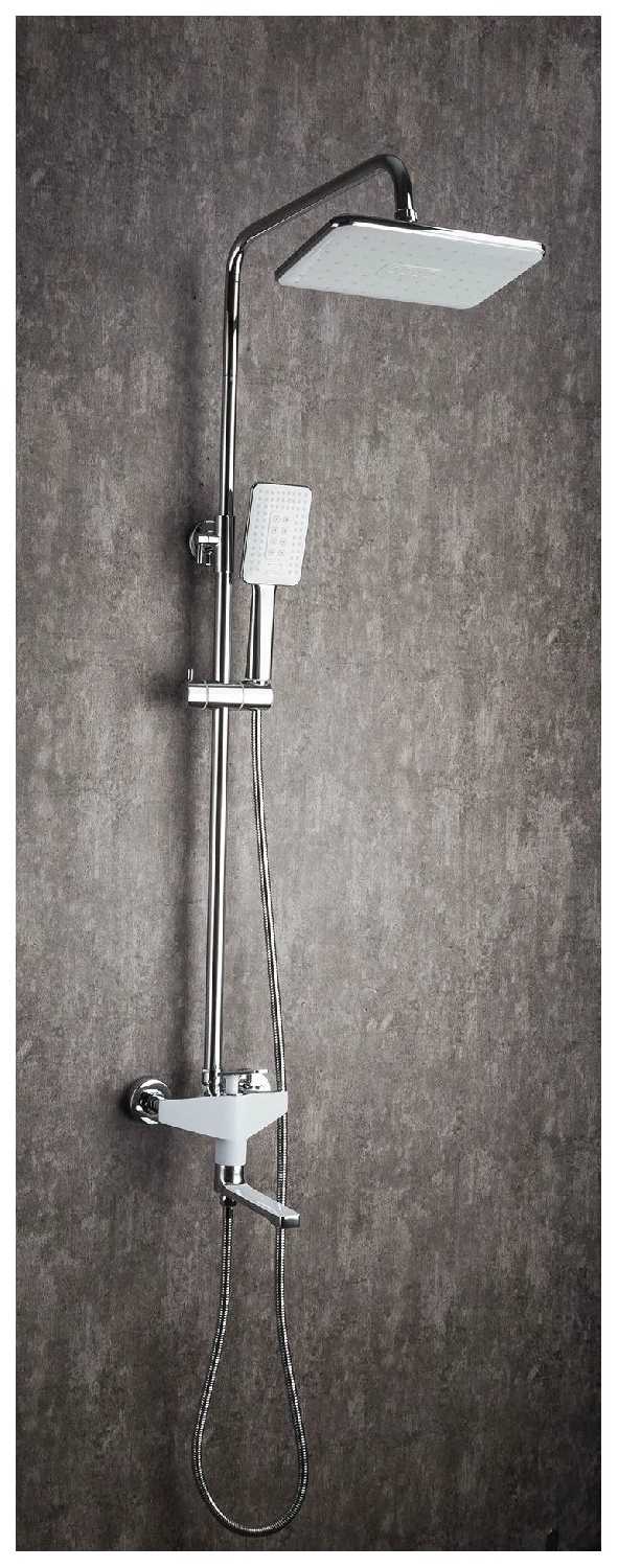 | Комплектация : | верхний душ, держатель лейки, душевая стойка, излив для набора воды, кронштейн, лейка, ручной душ, смеситель, шланг |