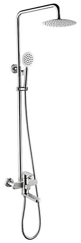 | Комплектация : | вентиль, верхний душ, душевая стойка, излив для набора воды, лейка, набор эксцентриков, отражатель, ручной душ, смеситель, шланг |