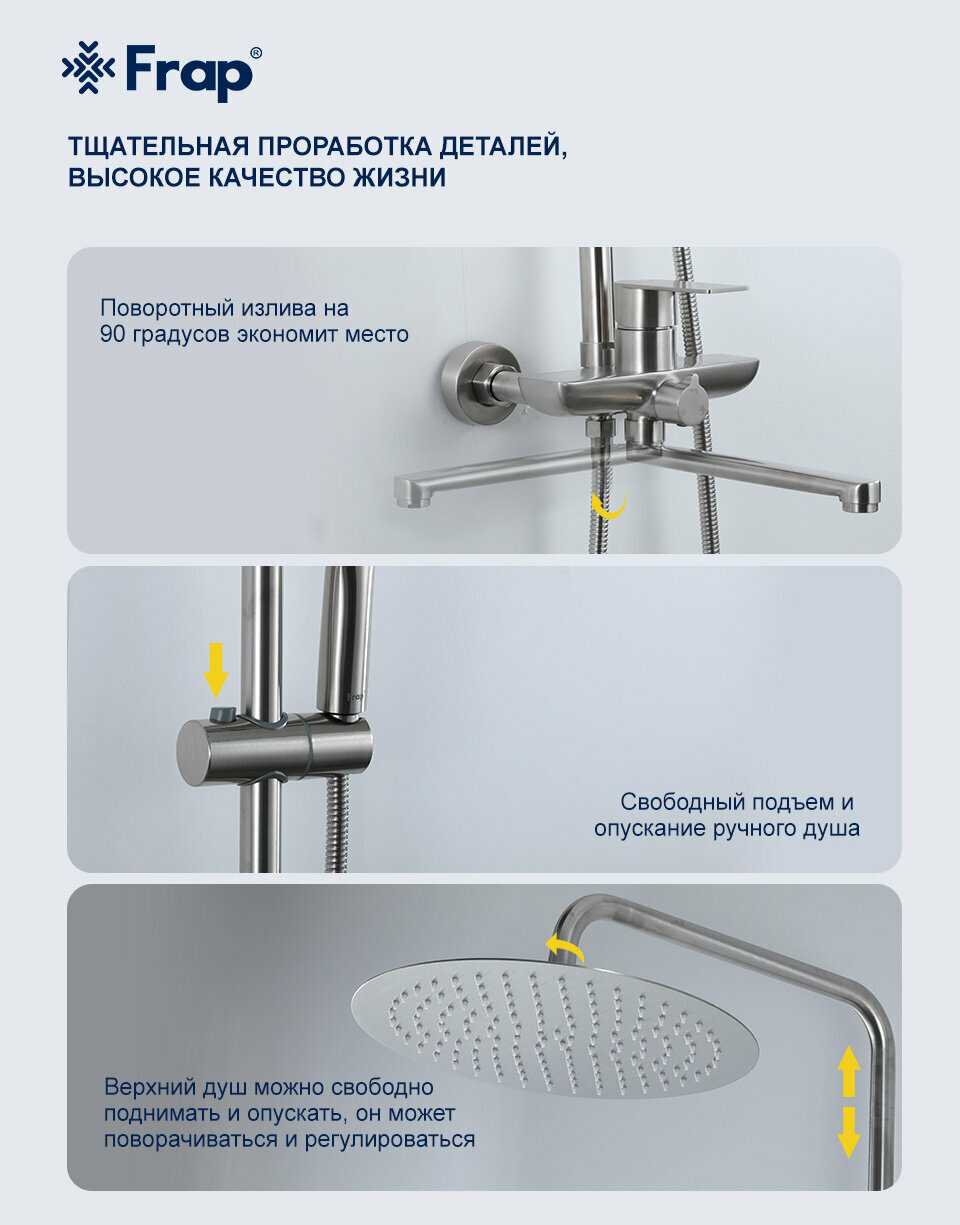 Что больше всего понравилось, так это то, что тропический душ можно направить под разный угол и также настроить высоту