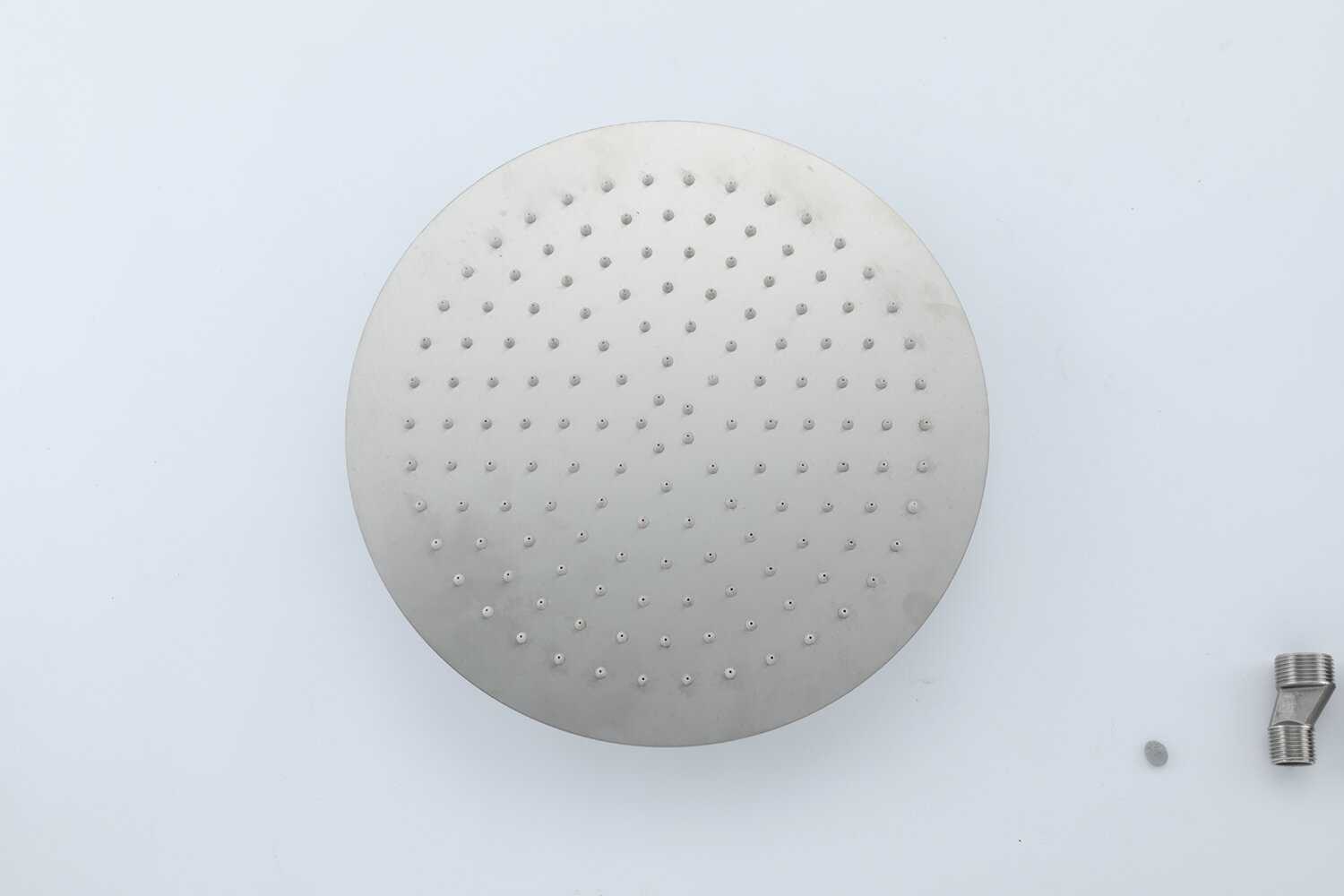 - + Большая лейка верхнего душа, хороший дизайн, матовый хром. Наличие крана снизу (не во всех моделях есть)