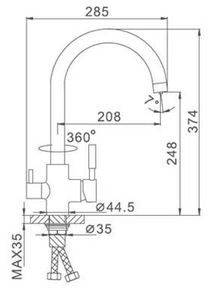 - + Удобный кран с единым изливом для обычной и фильтрованной воды. При этом каждая вода течёт по своему каналу и смешивания не происходит.