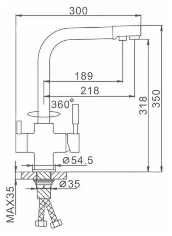 - + Стильный смеситель, раздельная подача водопроводной и питьевой воды, что было важно.