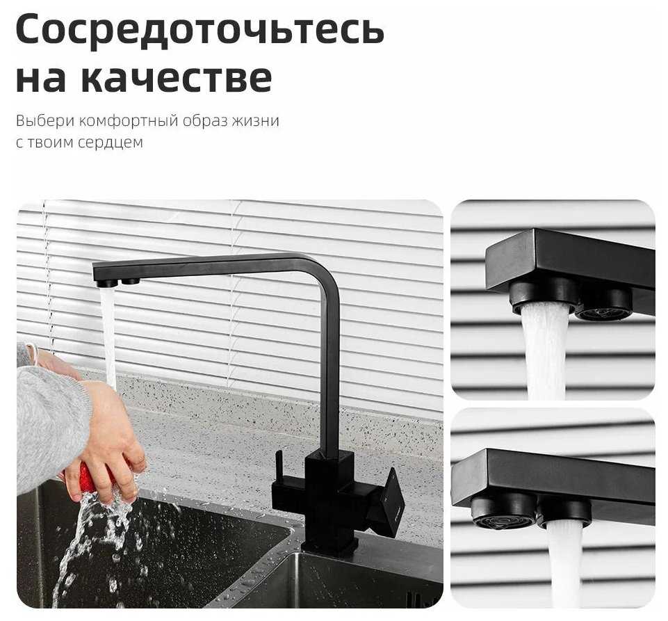 в целом кран нравится, искала именно высокий с 2мя отверстиями, тк не хотела кран для фильтра отдельно устанавливать. пользуюсь полгода, удобный, но вот то, что краска начала облезать растроило. мою только мягкой тряпочкой.