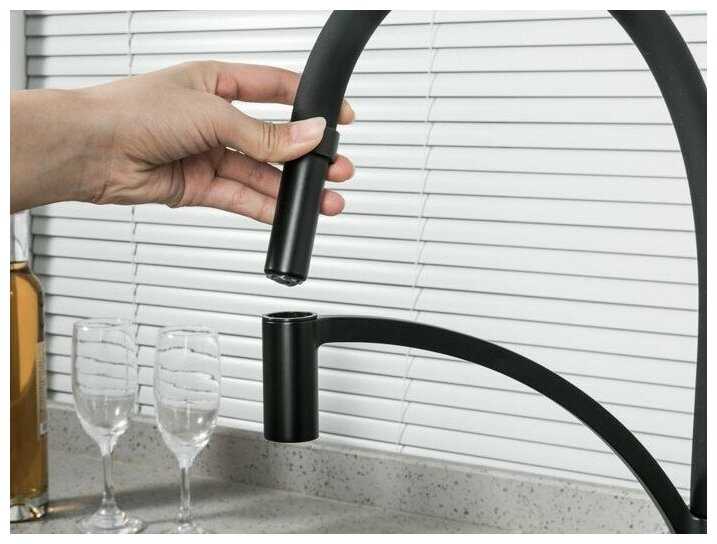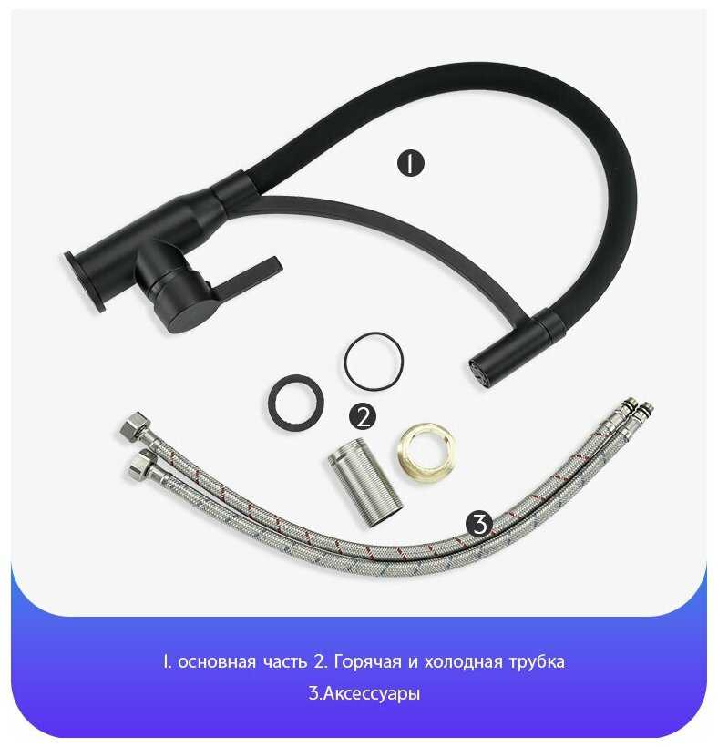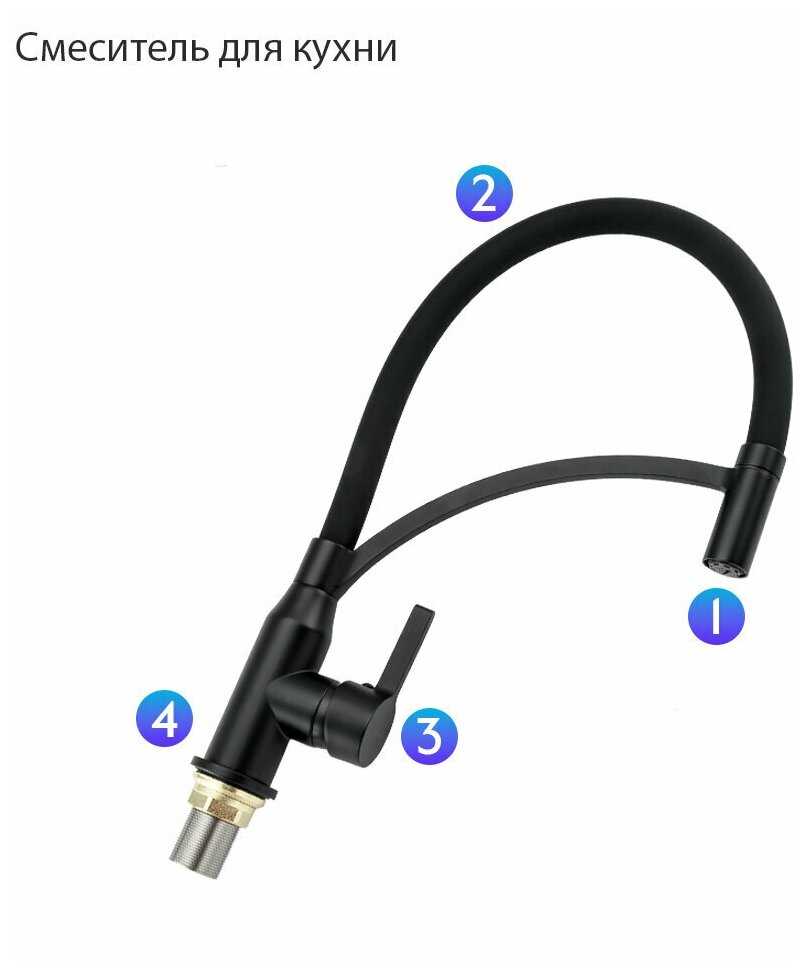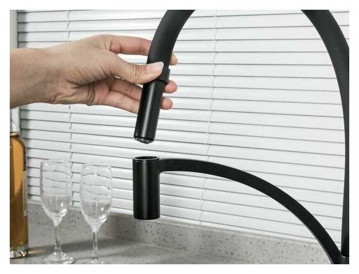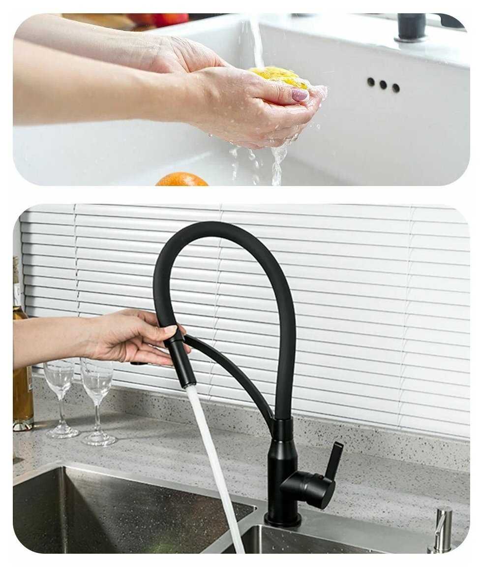- Шланг из гибкого ПВХ не перекручивается и сохраняет форму даже при частом вытягивании, что упрощает мытьё раковины.