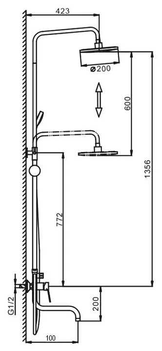 | Высота стойки для душа : | 1560 мм |