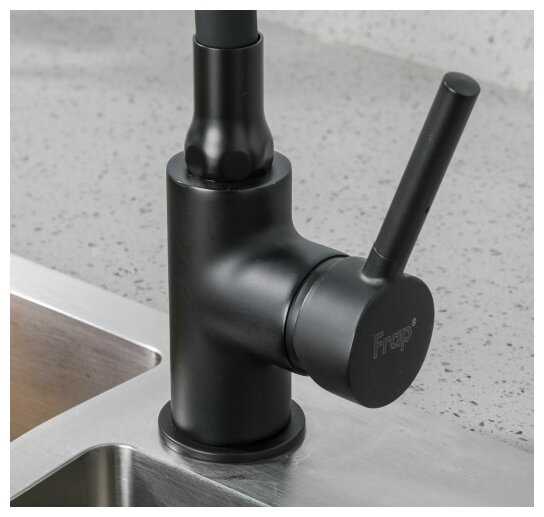 Благодаря гибкому изливу смеситель адаптируется к раковинам любой глубины. Для мелких моек пользователи рекомендуют направлять излив вниз, чтобы минимизировать брызги, а для глубоких — регулировать высоту для удобного наполнения посуды.