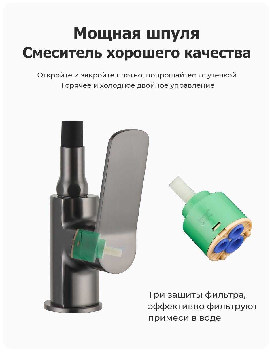 - + Самый удобный смеситель! Беру уже второй (на другую мойку) качество отличное, дизайн огонь!