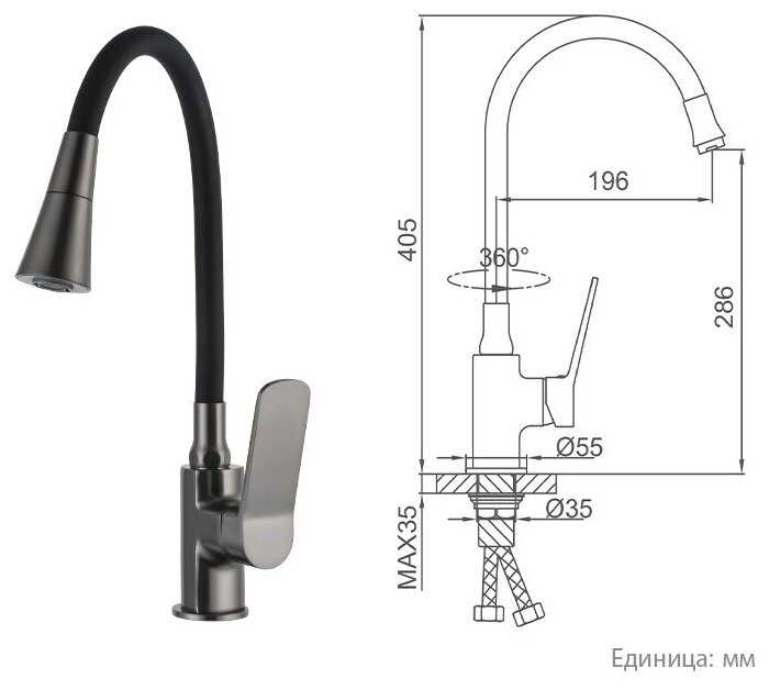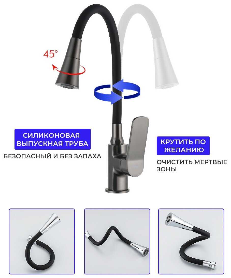 - + пользуюсь год. гибкий излив- очень удобно! отличное качество. нисколько не пожалел о покупке.