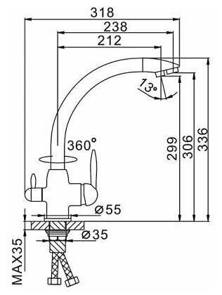 - + Совмещён с краном для фильтра, не пришлось покупать и устанавливать отдельно.