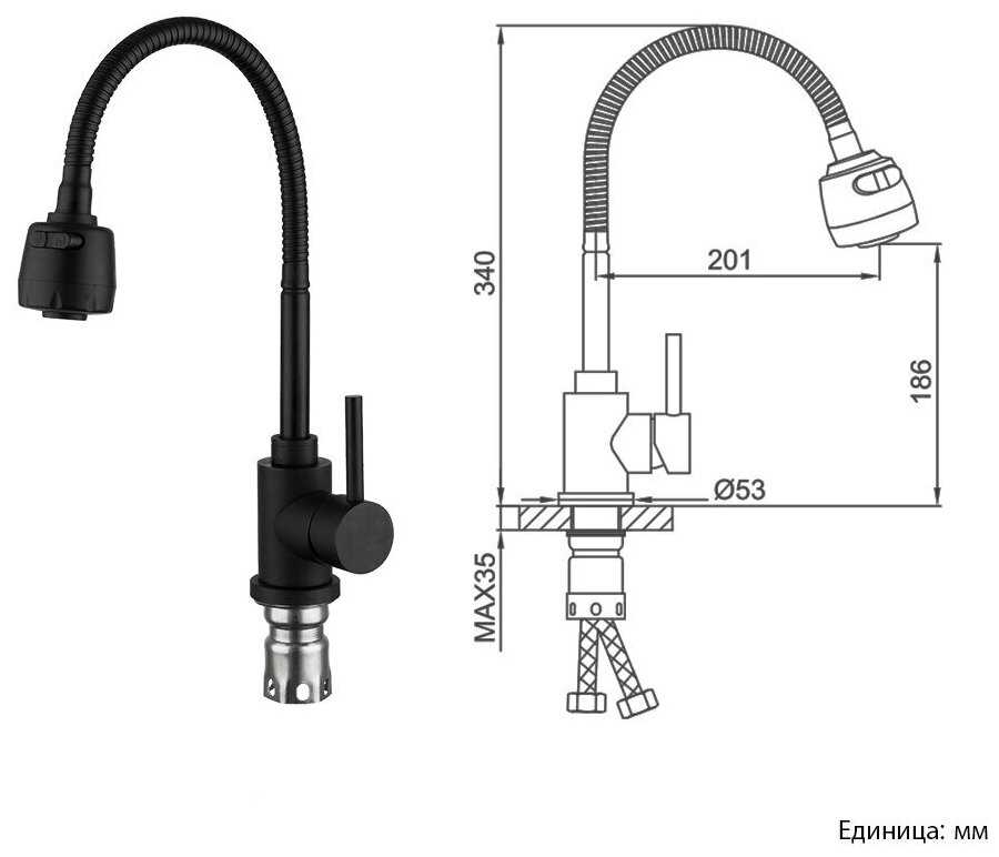 - + Идеальный смеситель оказался. Гибкий смеситель, удобно направлять изгиб в нужном направлении. Например, пониже, чтобы помыть поднос, или повыше, чтобы налить воды в чайник.