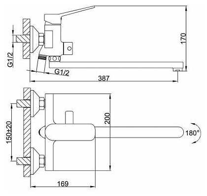 - Длина излива фактически 150 мм вместо 220 мм, высота 110 мм вместо 143 мм (по чертежу в описании, что вводит в заблуждение при выборе).