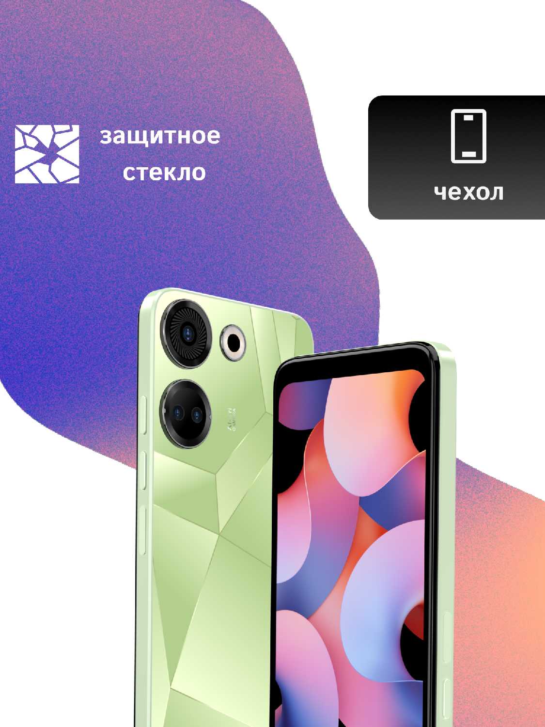в комплекте идёт чехол, наушники и стекло а плёнка уже наклеена на телефон что большой плюс - - за такую цену Я их не вижу единственное не поддерживает NFC
