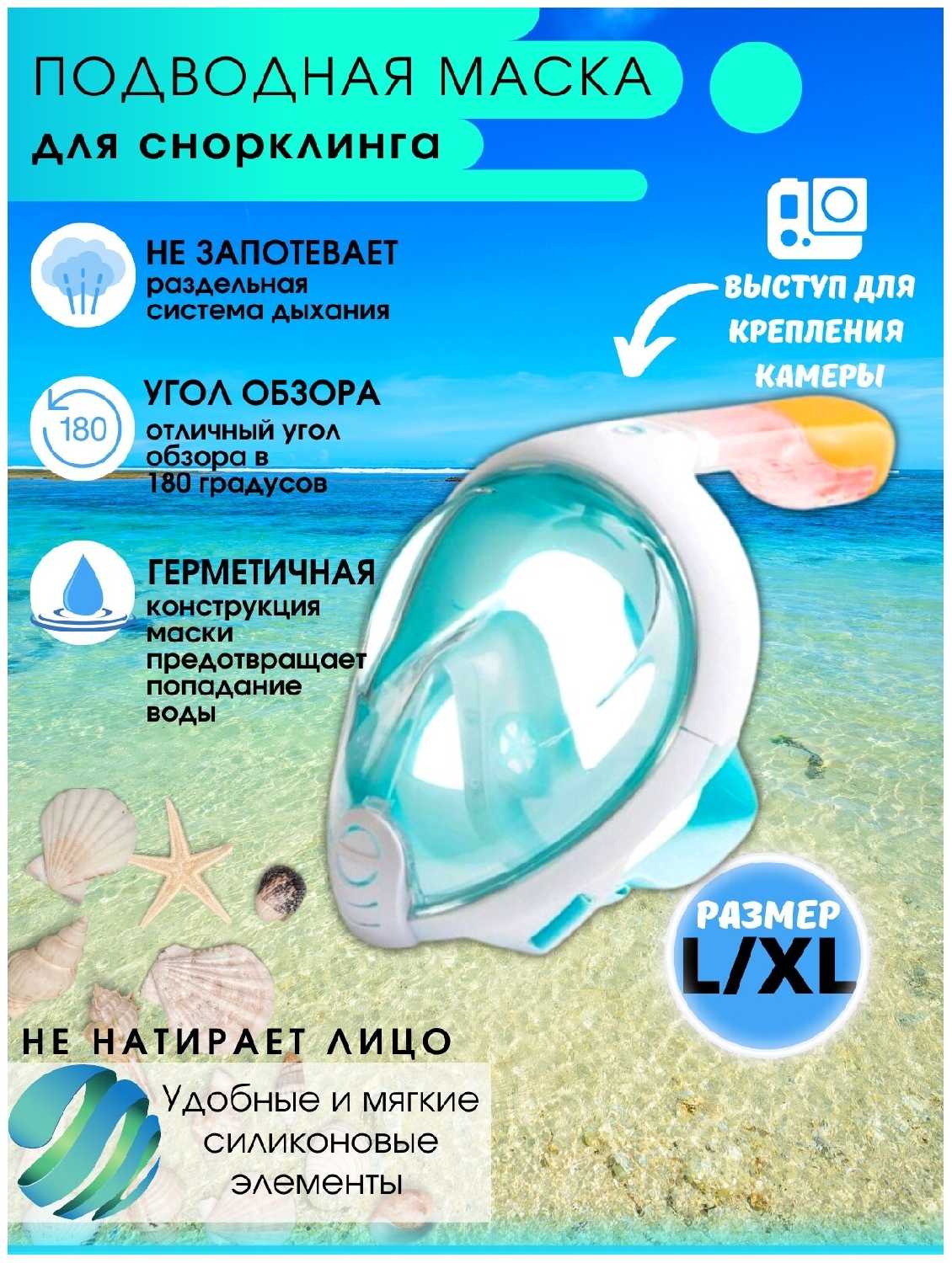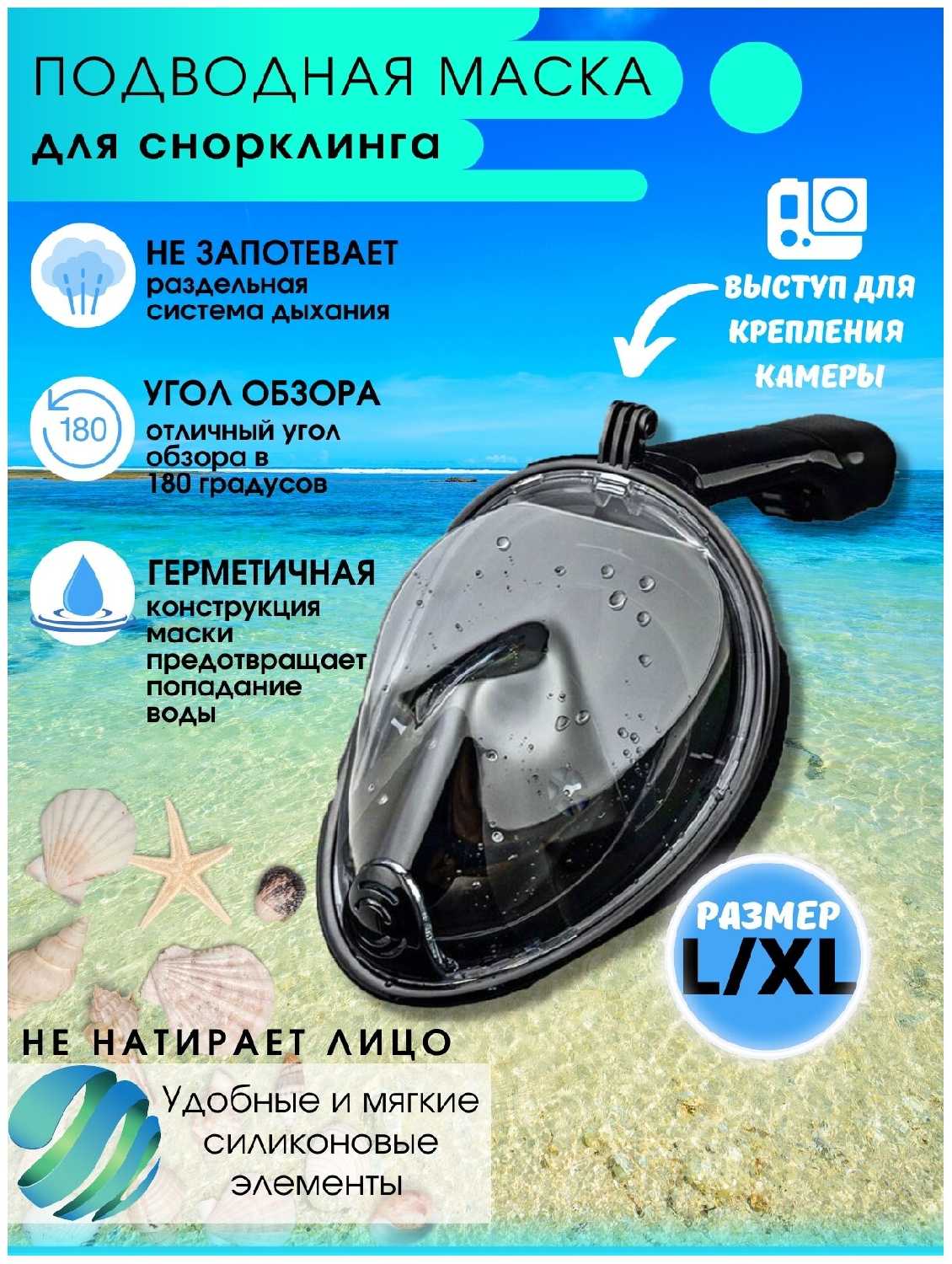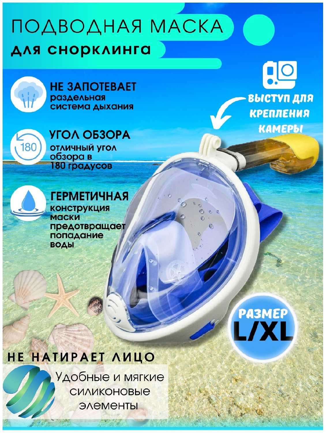 Отзывы о Маска для плавания с трубкой полнолицевая с креплением для экшн-камеры, маска для подводного плавания, маска для снорклинга детская